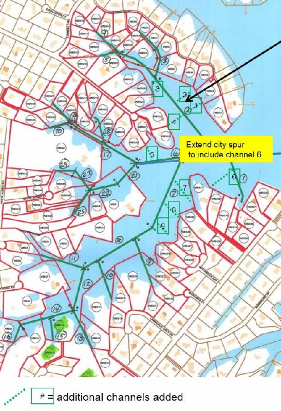 Channel 6 should be funded by the city. For other dredge projects the city has funded up to over 20% of the cost. For the 7 May plan, the city only funds 5.5%. Extending the city’s spur to include channel 6 will bring the city’s share to about 10%.